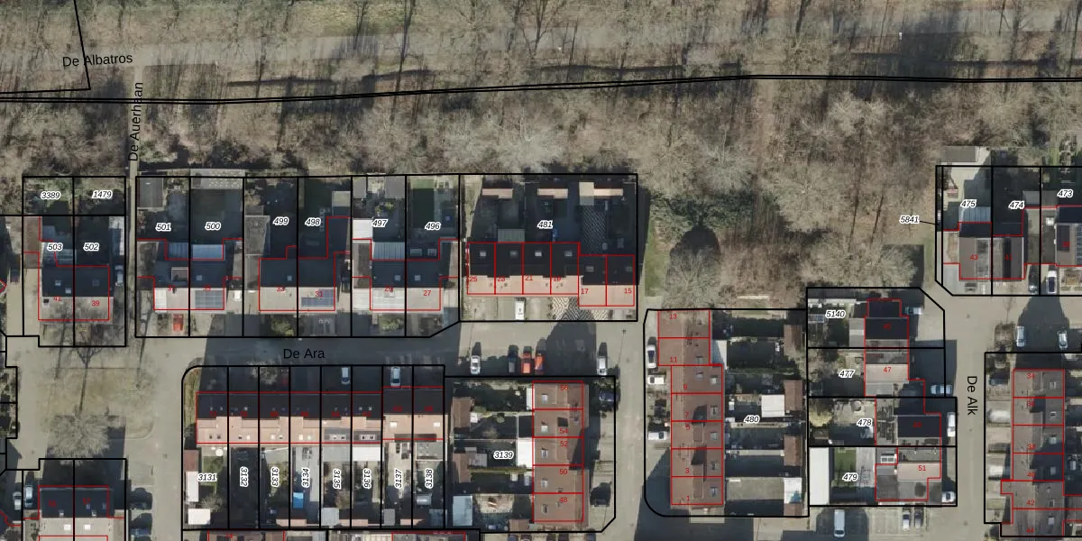 Het perceel waarop De Ara 21 staat heeft een oppervlakte van 890 m². Dit is een groot perceel. De perceeloppervlakte wordt geregistreerd door het Kadaster. Gedetailleerde informatie over de maten van dit perceel kunt u vinden in het rapport Kadastrale kaart met maatvoering van De Ara 21.