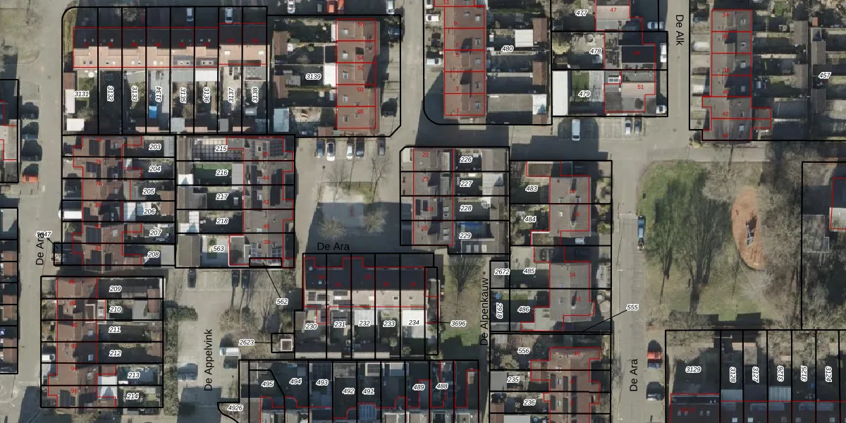 Het perceel waarop De Ara 24 staat heeft een oppervlakte van 145 m². Dit is een middelgroot perceel. De perceeloppervlakte wordt geregistreerd door het Kadaster. Gedetailleerde informatie over de maten van dit perceel kunt u vinden in het rapport Kadastrale kaart met maatvoering van De Ara 24.