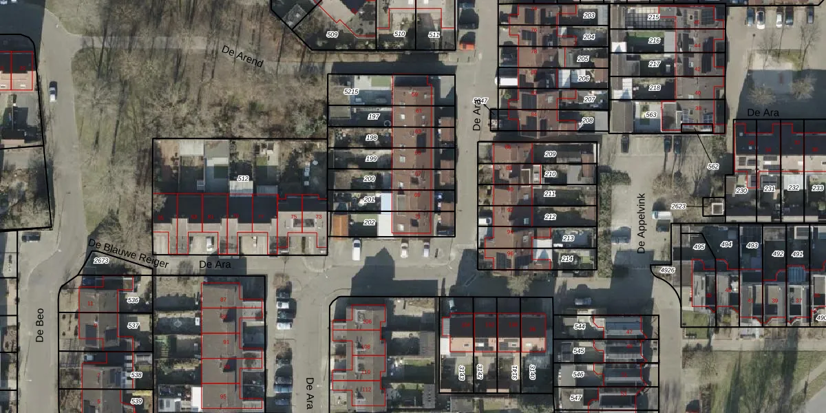 Het perceel waarop De Ara 69 staat heeft een oppervlakte van 157 m². Dit is een middelgroot perceel. De perceeloppervlakte wordt geregistreerd door het Kadaster. Gedetailleerde informatie over de maten van dit perceel kunt u vinden in het rapport Kadastrale kaart met maatvoering van De Ara 69.