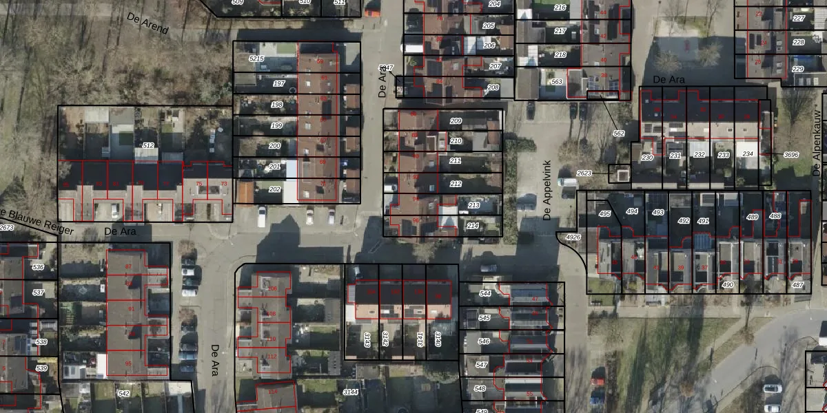 Het perceel waarop De Ara 94 staat heeft een oppervlakte van 149 m². Dit is een middelgroot perceel. De perceeloppervlakte wordt geregistreerd door het Kadaster. Gedetailleerde informatie over de maten van dit perceel kunt u vinden in het rapport Kadastrale kaart met maatvoering van De Ara 94.