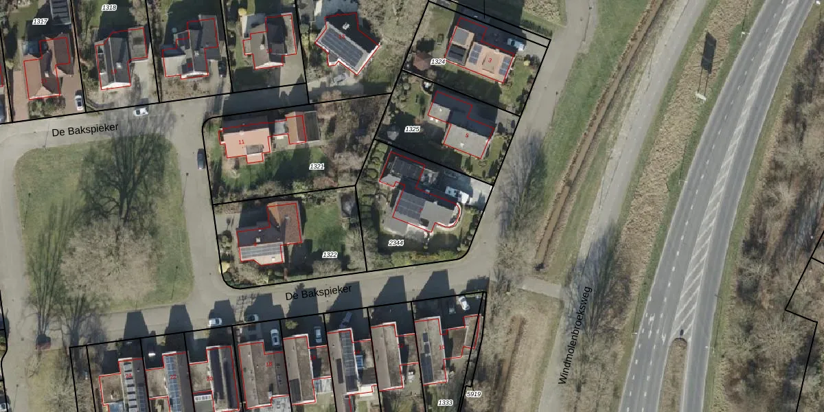 Het perceel waarop De Bakspieker 7 staat heeft een oppervlakte van 739 m². Dit is een groot perceel. De perceeloppervlakte wordt geregistreerd door het Kadaster. Gedetailleerde informatie over de maten van dit perceel kunt u vinden in het rapport Kadastrale kaart met maatvoering van De Bakspieker 7.