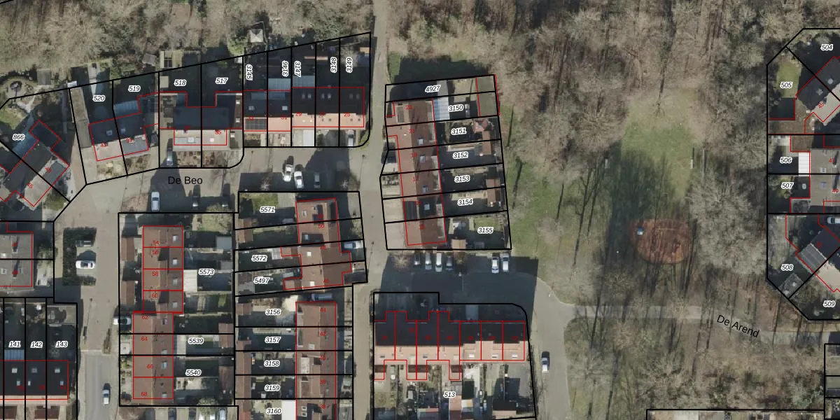 Het perceel waarop De Beo 15 staat heeft een oppervlakte van 169 m². Dit is een middelgroot perceel. De perceeloppervlakte wordt geregistreerd door het Kadaster. Gedetailleerde informatie over de maten van dit perceel kunt u vinden in het rapport Kadastrale kaart met maatvoering van De Beo 15.