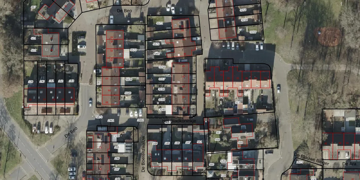 Het perceel waarop De Beo 40 staat heeft een oppervlakte van 160 m². Dit is een middelgroot perceel. De perceeloppervlakte wordt geregistreerd door het Kadaster. Gedetailleerde informatie over de maten van dit perceel kunt u vinden in het rapport Kadastrale kaart met maatvoering van De Beo 40.