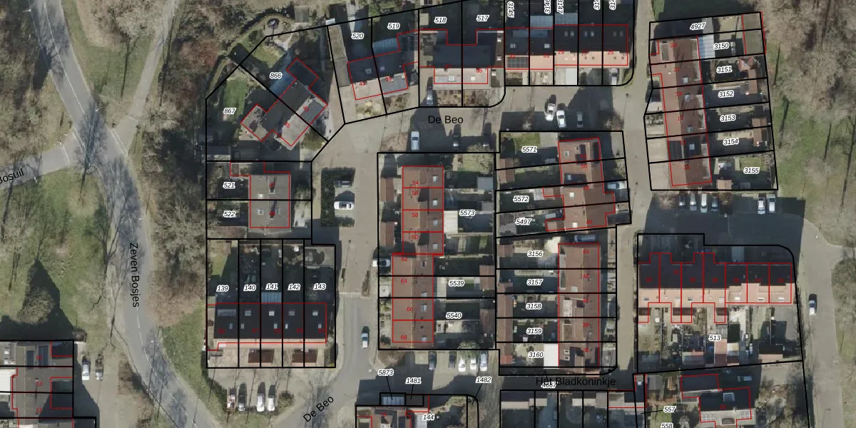 Het perceel waarop De Beo 58 staat heeft een oppervlakte van 944 m². Dit is een groot perceel. De perceeloppervlakte wordt geregistreerd door het Kadaster. Gedetailleerde informatie over de maten van dit perceel kunt u vinden in het rapport Kadastrale kaart met maatvoering van De Beo 58.