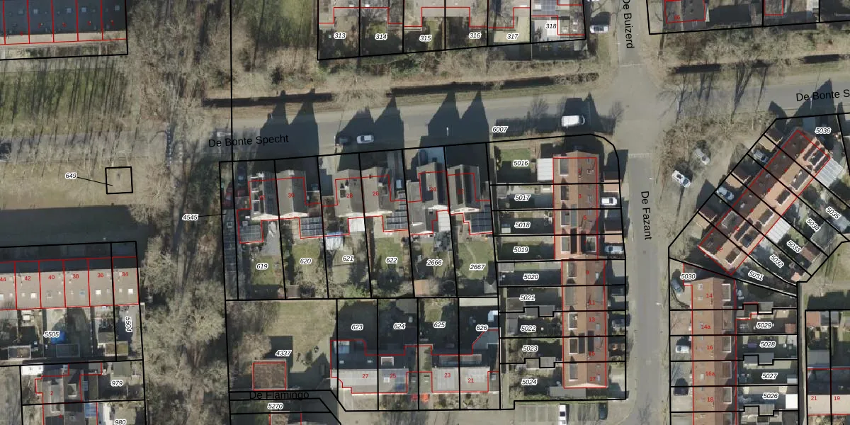 Het perceel waarop De Bonte Specht 24 staat heeft een oppervlakte van 352 m². Dit is een groot perceel. De perceeloppervlakte wordt geregistreerd door het Kadaster. Gedetailleerde informatie over de maten van dit perceel kunt u vinden in het rapport Kadastrale kaart met maatvoering van De Bonte Specht 24.