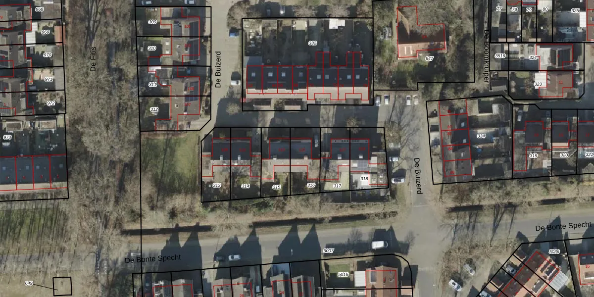 Het perceel waarop De Buizerd 115 staat heeft een oppervlakte van 226 m². Dit is een middelgroot perceel. De perceeloppervlakte wordt geregistreerd door het Kadaster. Gedetailleerde informatie over de maten van dit perceel kunt u vinden in het rapport Kadastrale kaart met maatvoering van De Buizerd 115.