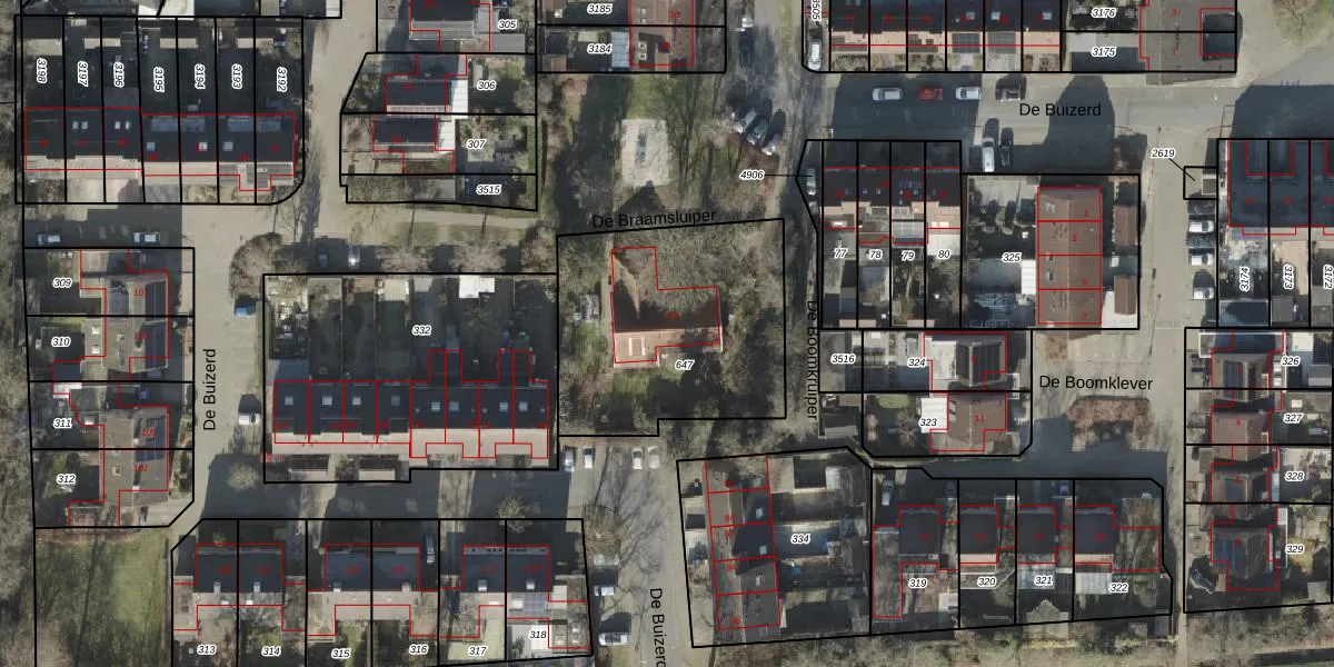 Gebruik de zoekbalk of klik op een perceel voor informatie over de adressen binnen dit perceel.