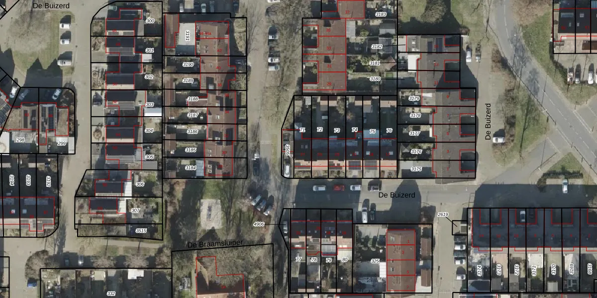 Het perceel waarop De Buizerd 27 staat heeft een oppervlakte van 163 m². Dit is een middelgroot perceel. De perceeloppervlakte wordt geregistreerd door het Kadaster. Gedetailleerde informatie over de maten van dit perceel kunt u vinden in het rapport Kadastrale kaart met maatvoering van De Buizerd 27.
