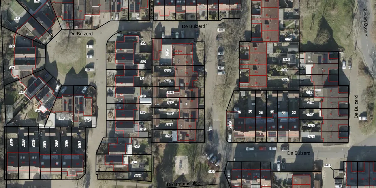 Het perceel waarop De Buizerd 36 staat heeft een oppervlakte van 160 m². Dit is een middelgroot perceel. De perceeloppervlakte wordt geregistreerd door het Kadaster. Gedetailleerde informatie over de maten van dit perceel kunt u vinden in het rapport Kadastrale kaart met maatvoering van De Buizerd 36.