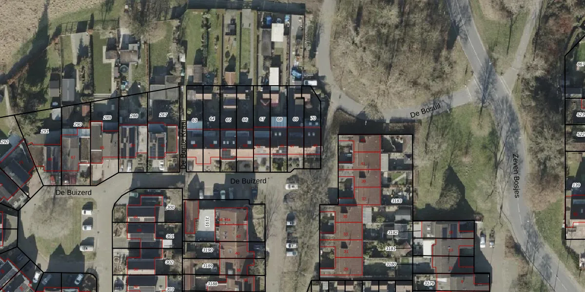 Gebruik de zoekbalk of klik op een perceel voor informatie over de adressen binnen dit perceel.