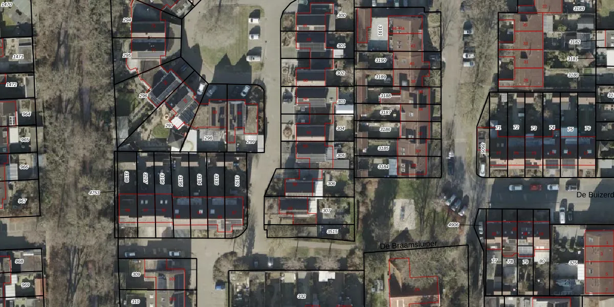 Gebruik de zoekbalk of klik op een perceel voor informatie over de adressen binnen dit perceel.