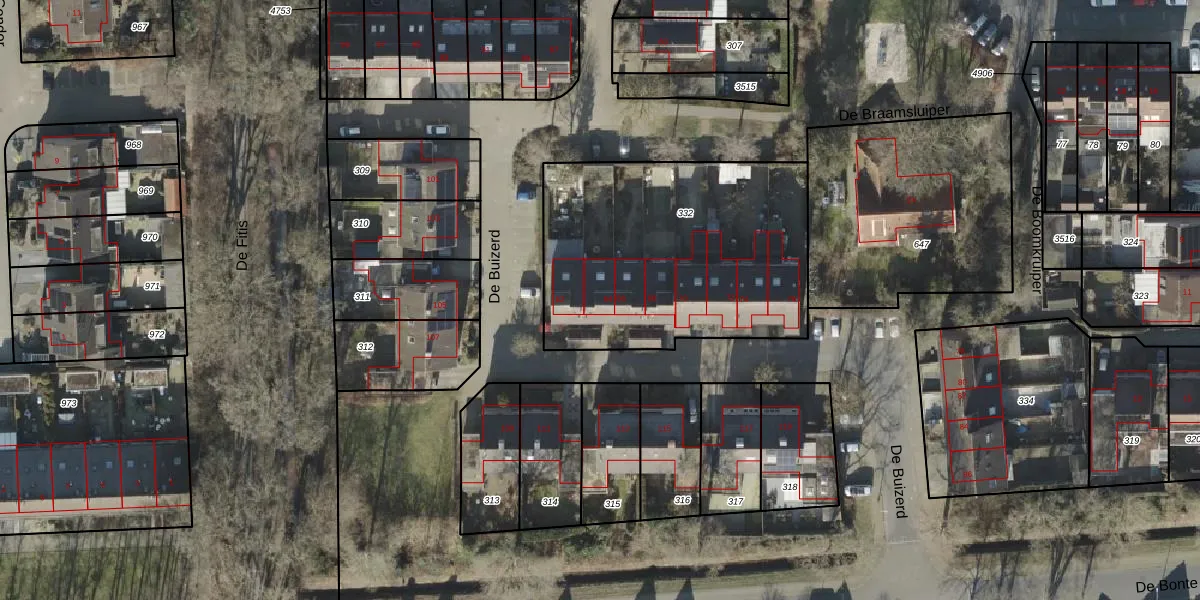 Het perceel waarop De Buizerd 64 staat heeft een oppervlakte van 1335 m². Dit is een zeer groot perceel. De perceeloppervlakte wordt geregistreerd door het Kadaster. Gedetailleerde informatie over de maten van dit perceel kunt u vinden in het rapport Kadastrale kaart met maatvoering van De Buizerd 64.