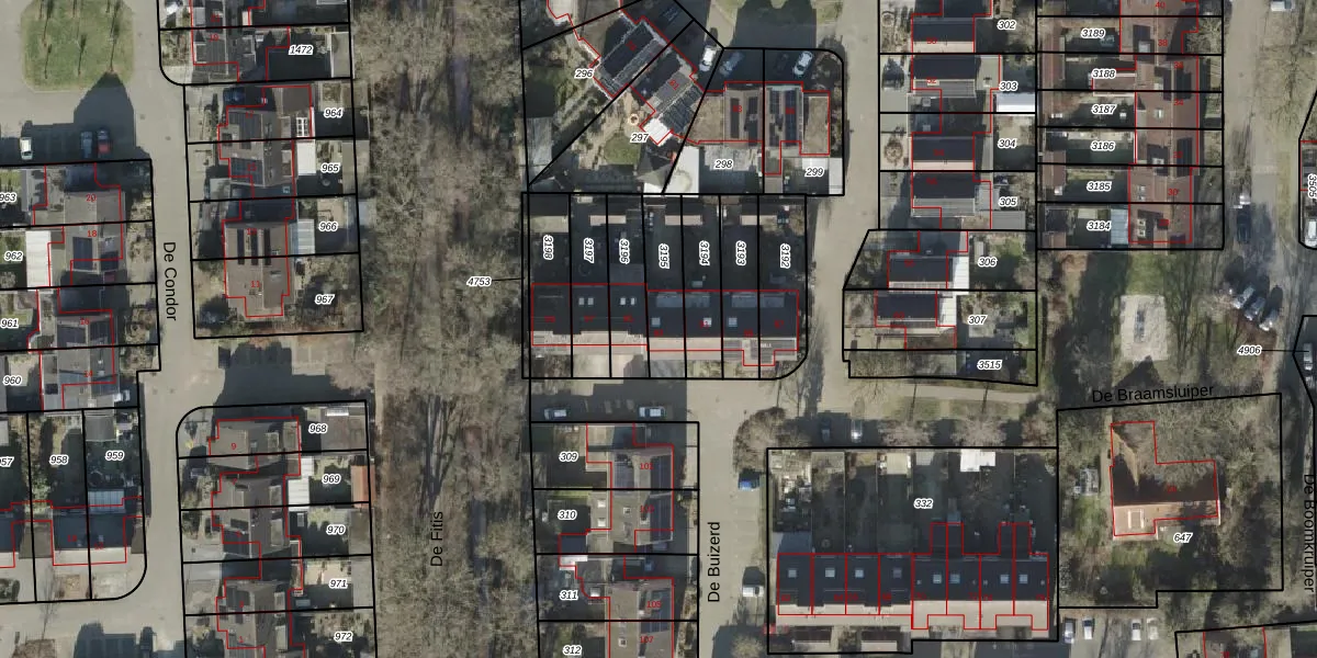 Het perceel waarop De Buizerd 93 staat heeft een oppervlakte van 160 m². Dit is een middelgroot perceel. De perceeloppervlakte wordt geregistreerd door het Kadaster. Gedetailleerde informatie over de maten van dit perceel kunt u vinden in het rapport Kadastrale kaart met maatvoering van De Buizerd 93.