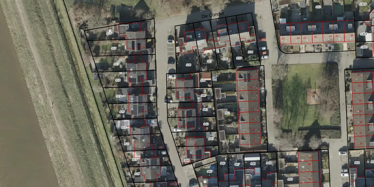 Het perceel waarop De Condor 62 staat heeft een oppervlakte van 195 m². Dit is een middelgroot perceel. De perceeloppervlakte wordt geregistreerd door het Kadaster. Gedetailleerde informatie over de maten van dit perceel kunt u vinden in het rapport Kadastrale kaart met maatvoering van De Condor 62.
