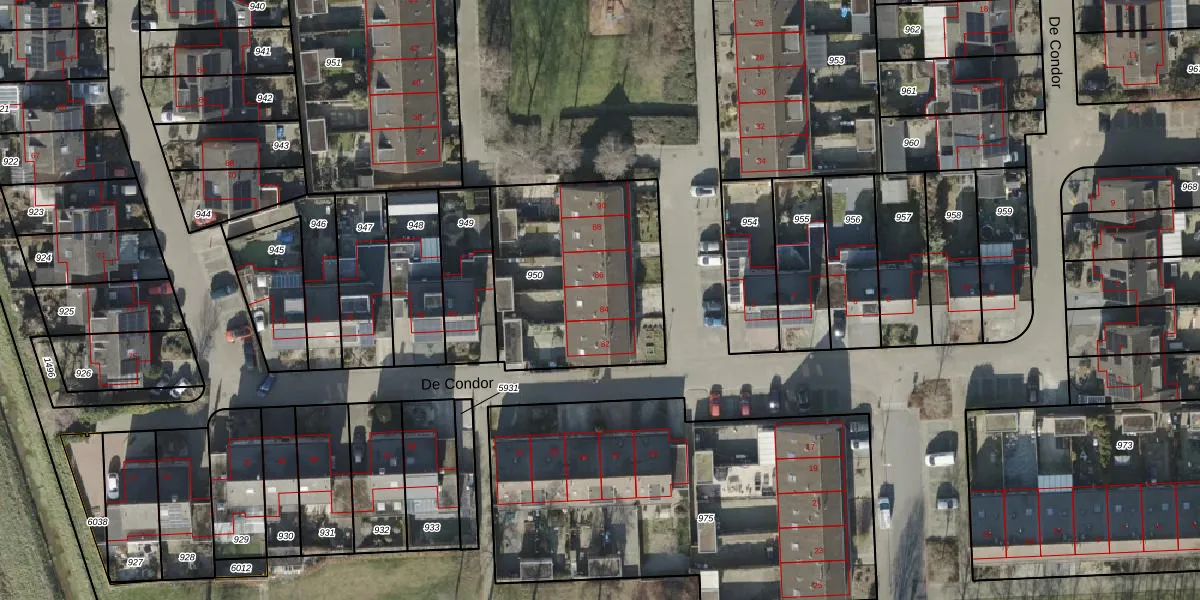 Het perceel waarop De Condor 84 staat heeft een oppervlakte van 858 m². Dit is een groot perceel. De perceeloppervlakte wordt geregistreerd door het Kadaster. Gedetailleerde informatie over de maten van dit perceel kunt u vinden in het rapport Kadastrale kaart met maatvoering van De Condor 84.