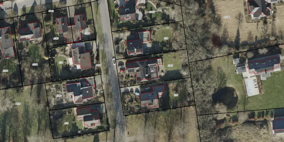 Het perceel waarop De Delle 17 staat heeft een oppervlakte van 1011 m². Dit is een zeer groot perceel. De perceeloppervlakte wordt geregistreerd door het Kadaster. Gedetailleerde informatie over de maten van dit perceel kunt u vinden in het rapport Kadastrale kaart met maatvoering van De Delle 17.