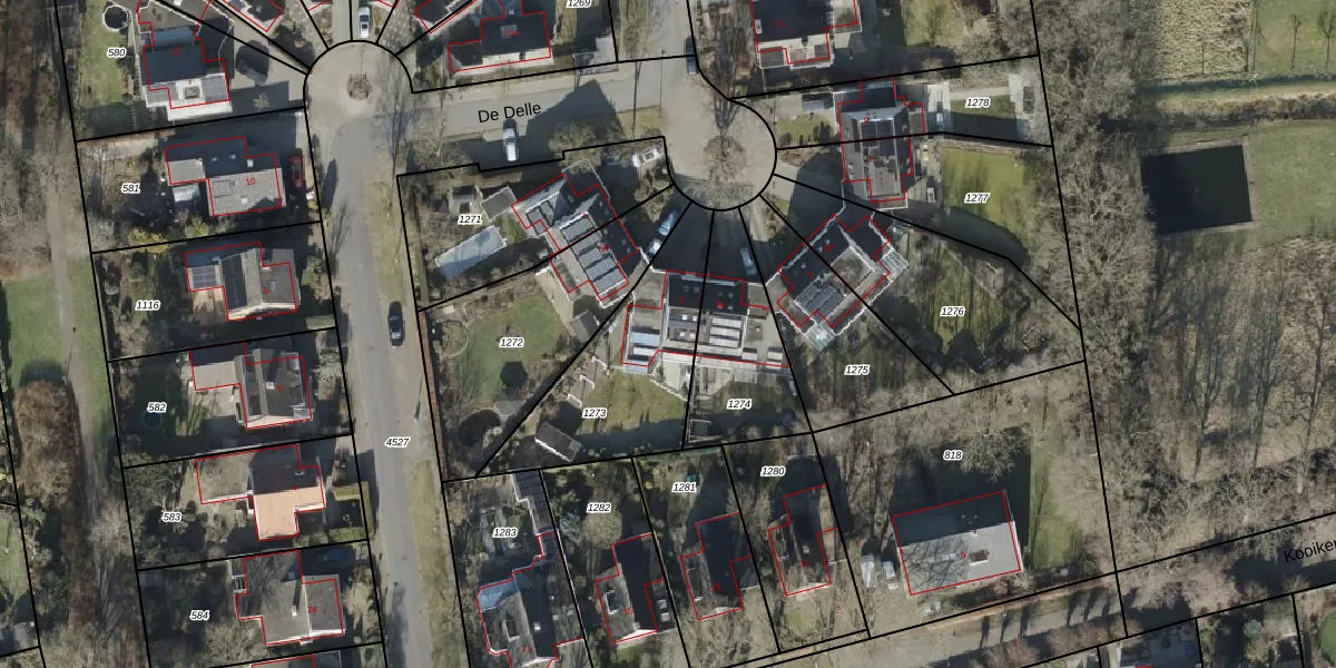 Het perceel waarop De Delle 3 staat heeft een oppervlakte van 605 m². Dit is een groot perceel. De perceeloppervlakte wordt geregistreerd door het Kadaster. Gedetailleerde informatie over de maten van dit perceel kunt u vinden in het rapport Kadastrale kaart met maatvoering van De Delle 3.