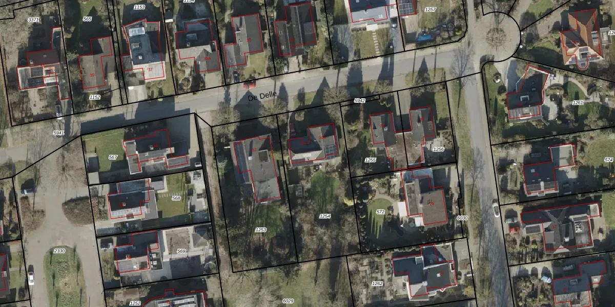 Het perceel waarop De Delle 30-a staat heeft een oppervlakte van 1037 m². Dit is een zeer groot perceel. De perceeloppervlakte wordt geregistreerd door het Kadaster. Gedetailleerde informatie over de maten van dit perceel kunt u vinden in het rapport Kadastrale kaart met maatvoering van De Delle 30-a.