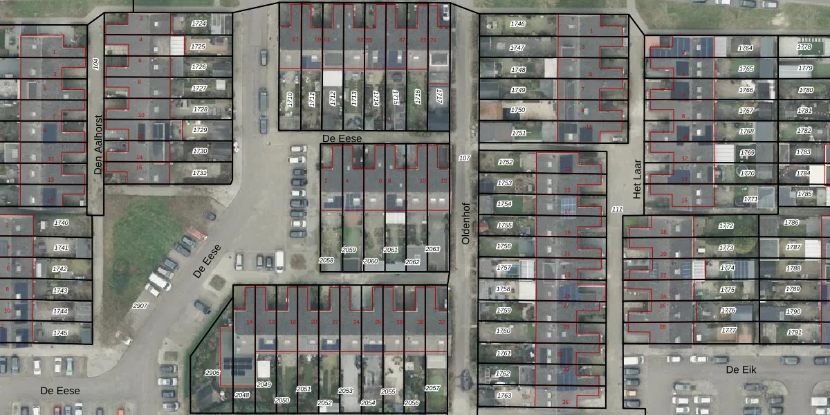 Gebruik de zoekbalk of klik op een perceel voor informatie over de adressen binnen dit perceel.