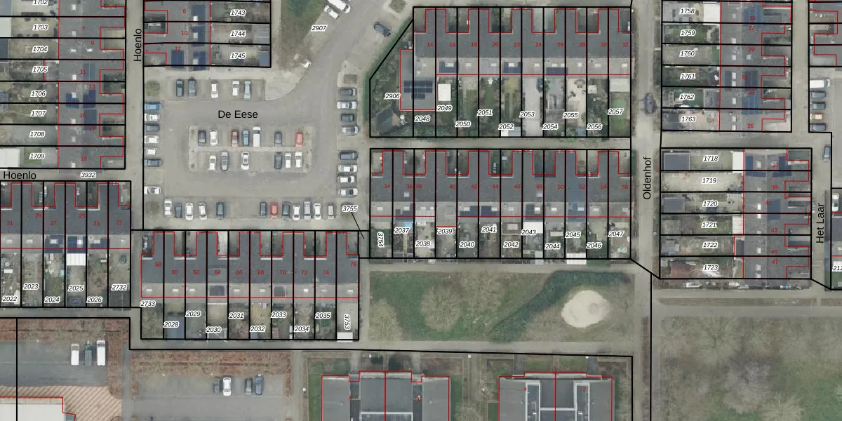 Het perceel waarop De Eese 38 staat heeft een oppervlakte van 132 m². Dit is een middelgroot perceel. De perceeloppervlakte wordt geregistreerd door het Kadaster. Gedetailleerde informatie over de maten van dit perceel kunt u vinden in het rapport Kadastrale kaart met maatvoering van De Eese 38.