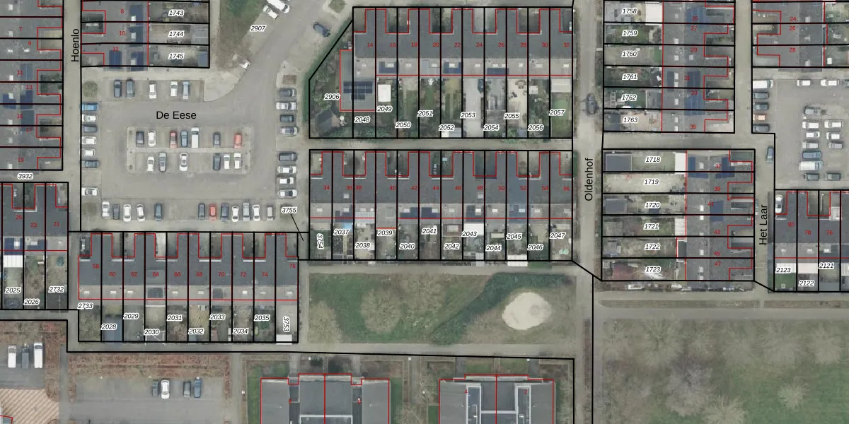 De Eese 44 is gelegen op kadastraal perceel AML01M2041. Deze kadastrale aanduiding is uniek en wordt gebruikt door het Kadaster om eigendomsrechten en andere zakelijke rechten vast te leggen. Het perceel maakt onderdeel uit van de kadastrale gemeente Ambt-Almelo.