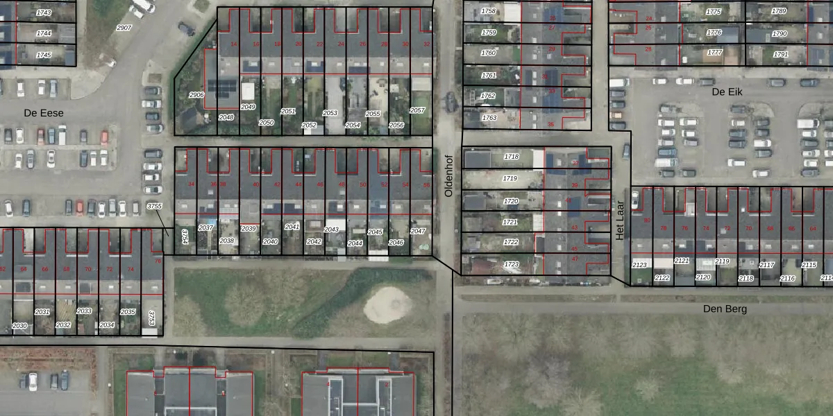 Gebruik de zoekbalk of klik op een perceel voor informatie over de adressen binnen dit perceel.
