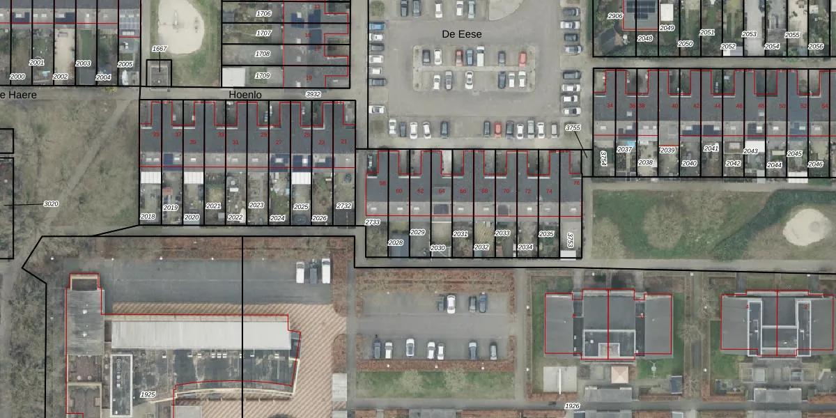 Gebruik de zoekbalk of klik op een perceel voor informatie over de adressen binnen dit perceel.