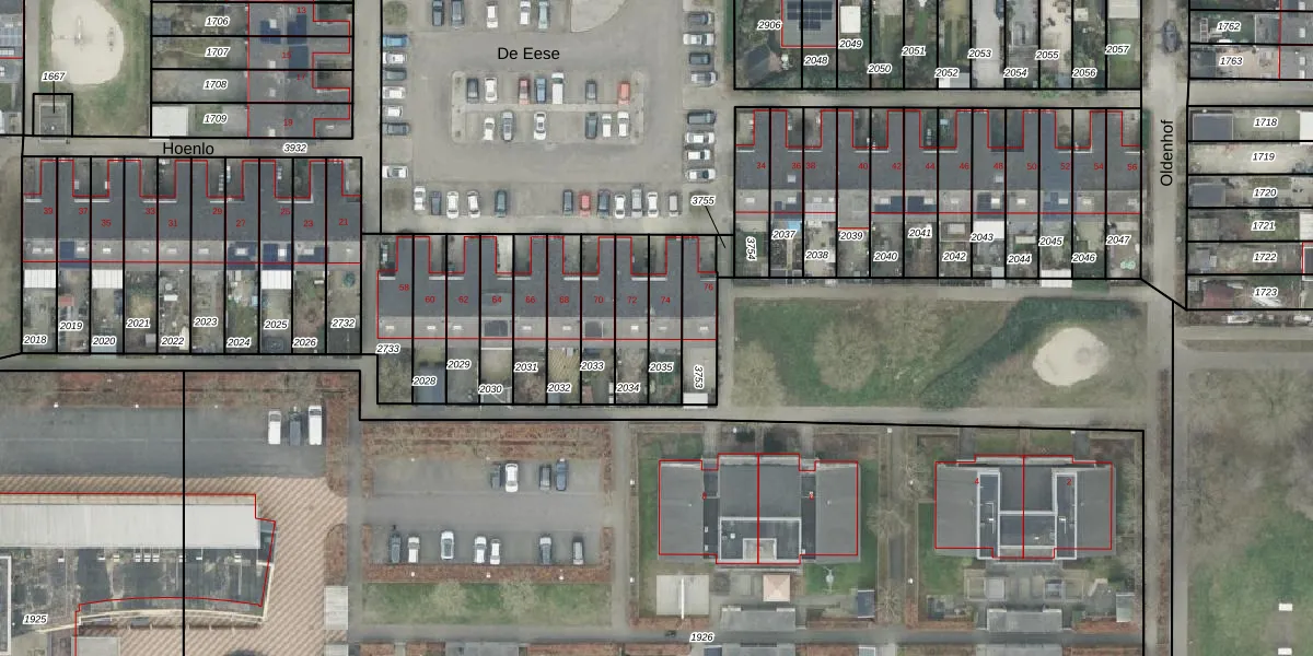 Gebruik de zoekbalk of klik op een perceel voor informatie over de adressen binnen dit perceel.