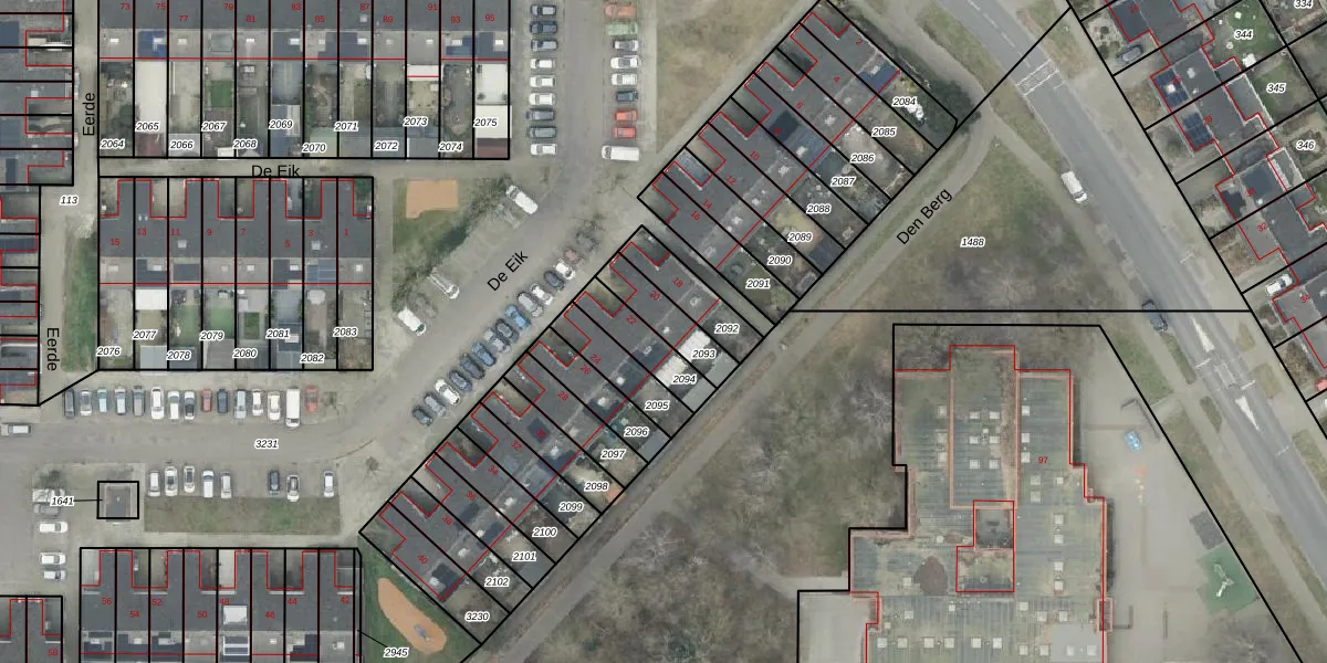 Gebruik de zoekbalk of klik op een perceel voor informatie over de adressen binnen dit perceel.