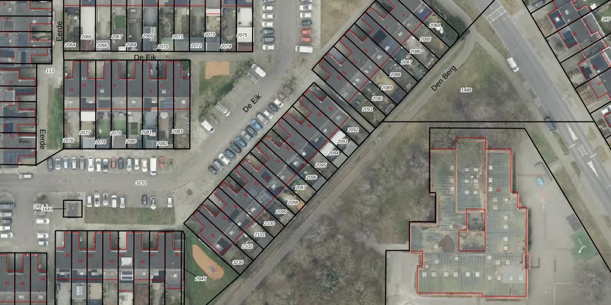 Gebruik de zoekbalk of klik op een perceel voor informatie over de adressen binnen dit perceel.