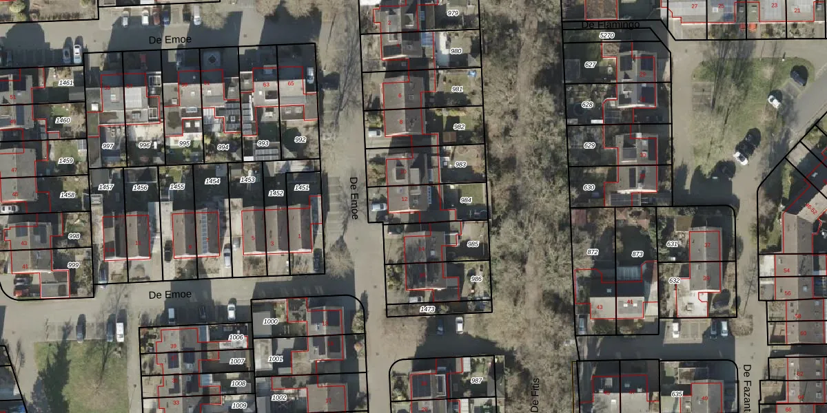 Het perceel waarop De Emoe 12 staat heeft een oppervlakte van 264 m². Dit is een middelgroot perceel. De perceeloppervlakte wordt geregistreerd door het Kadaster. Gedetailleerde informatie over de maten van dit perceel kunt u vinden in het rapport Kadastrale kaart met maatvoering van De Emoe 12.