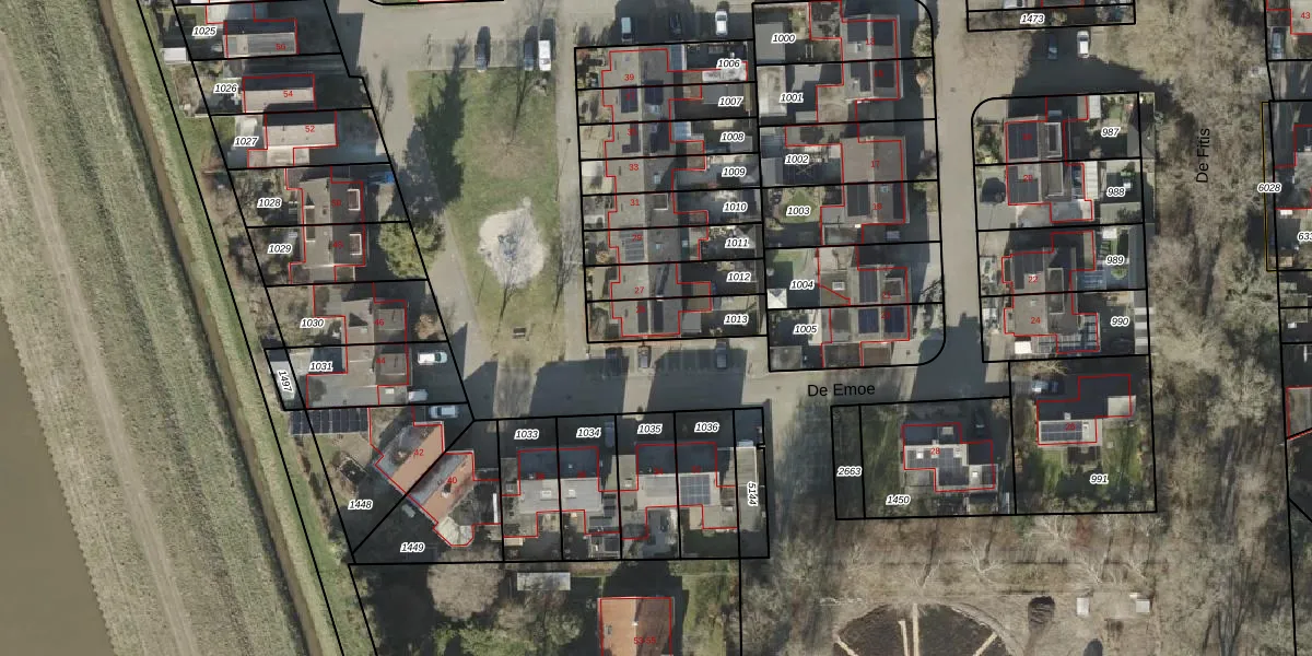 Het perceel waarop De Emoe 25 staat heeft een oppervlakte van 173 m². Dit is een middelgroot perceel. De perceeloppervlakte wordt geregistreerd door het Kadaster. Gedetailleerde informatie over de maten van dit perceel kunt u vinden in het rapport Kadastrale kaart met maatvoering van De Emoe 25.