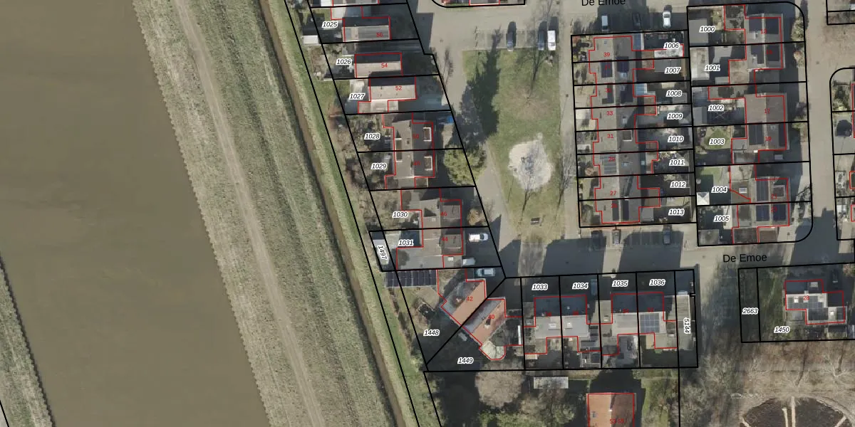 De Emoe 46 is gelegen op kadastraal perceel AML01N1030. Deze kadastrale aanduiding is uniek en wordt gebruikt door het Kadaster om eigendomsrechten en andere zakelijke rechten vast te leggen. Het perceel maakt onderdeel uit van de kadastrale gemeente Ambt-Almelo.