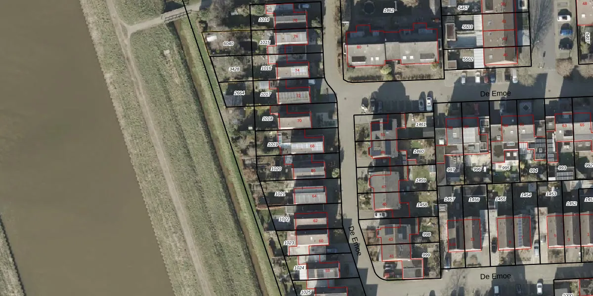 De Emoe 68 is gelegen op kadastraal perceel AML01N1019. Deze kadastrale aanduiding is uniek en wordt gebruikt door het Kadaster om eigendomsrechten en andere zakelijke rechten vast te leggen. Het perceel maakt onderdeel uit van de kadastrale gemeente Ambt-Almelo.