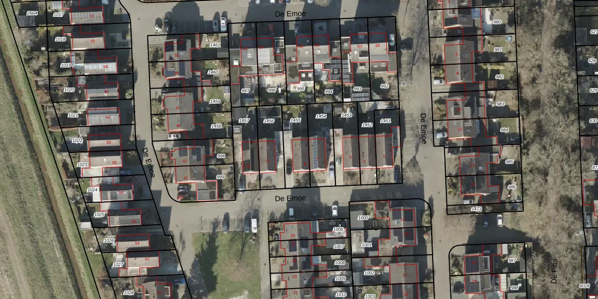 Het perceel waarop De Emoe 9 staat heeft een oppervlakte van 235 m². Dit is een middelgroot perceel. De perceeloppervlakte wordt geregistreerd door het Kadaster. Gedetailleerde informatie over de maten van dit perceel kunt u vinden in het rapport Kadastrale kaart met maatvoering van De Emoe 9.