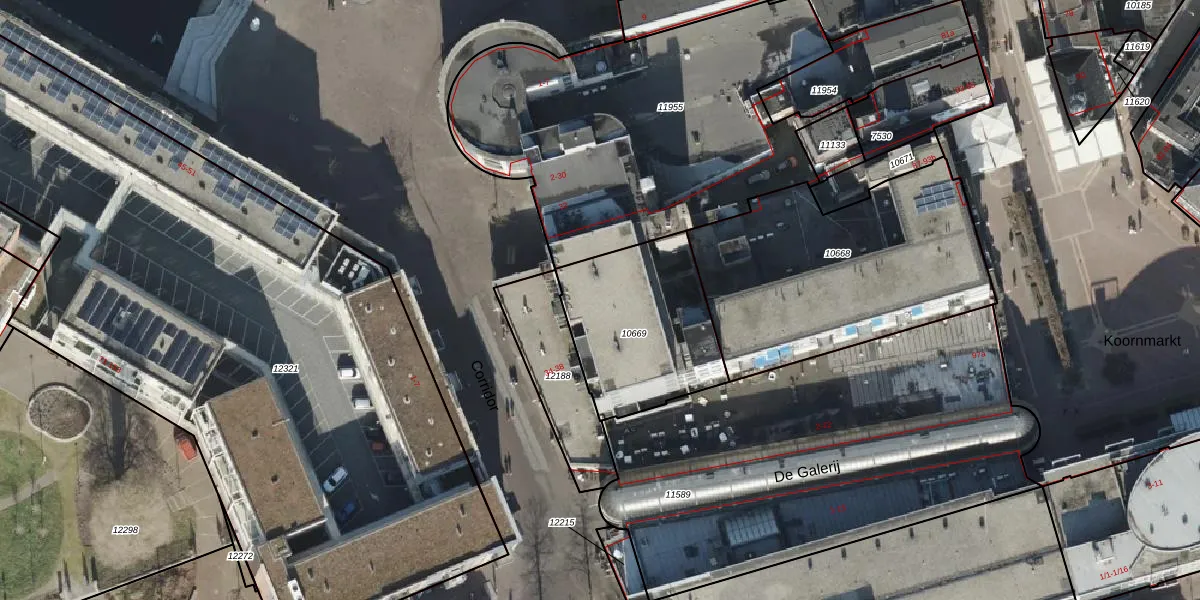 Het perceel waarop De Galerij 4-d staat heeft een oppervlakte van 590 m². Dit is een groot perceel. De perceeloppervlakte wordt geregistreerd door het Kadaster. Gedetailleerde informatie over de maten van dit perceel kunt u vinden in het rapport Kadastrale kaart met maatvoering van De Galerij 4-d.