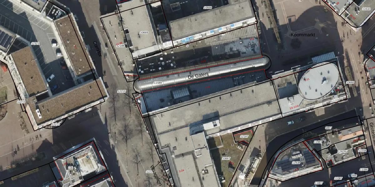 De Galerij 5 is gelegen op kadastraal perceel AML02B11589. Deze kadastrale aanduiding is uniek en wordt gebruikt door het Kadaster om eigendomsrechten en andere zakelijke rechten vast te leggen. Het perceel maakt onderdeel uit van de kadastrale gemeente Stad-Almelo.