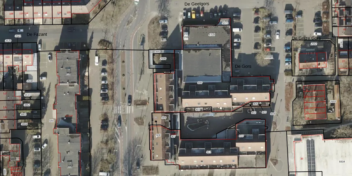 Het perceel waarop De Gors 63 staat heeft een oppervlakte van 1666 m². Dit is een zeer groot perceel. De perceeloppervlakte wordt geregistreerd door het Kadaster. Gedetailleerde informatie over de maten van dit perceel kunt u vinden in het rapport Kadastrale kaart met maatvoering van De Gors 63.