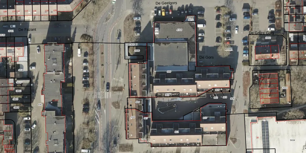 Het perceel waarop De Gors 65 staat heeft een oppervlakte van 1666 m². Dit is een zeer groot perceel. De perceeloppervlakte wordt geregistreerd door het Kadaster. Gedetailleerde informatie over de maten van dit perceel kunt u vinden in het rapport Kadastrale kaart met maatvoering van De Gors 65.