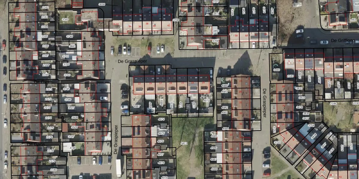 Het perceel waarop De Graspieper 21 staat heeft een oppervlakte van 163 m². Dit is een middelgroot perceel. De perceeloppervlakte wordt geregistreerd door het Kadaster. Gedetailleerde informatie over de maten van dit perceel kunt u vinden in het rapport Kadastrale kaart met maatvoering van De Graspieper 21.