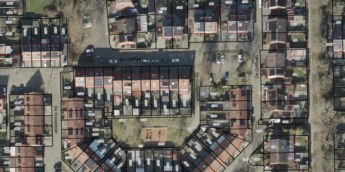 De Griffioen 21 is gelegen op kadastraal perceel AML01N2194. Deze kadastrale aanduiding is uniek en wordt gebruikt door het Kadaster om eigendomsrechten en andere zakelijke rechten vast te leggen. Het perceel maakt onderdeel uit van de kadastrale gemeente Ambt-Almelo.