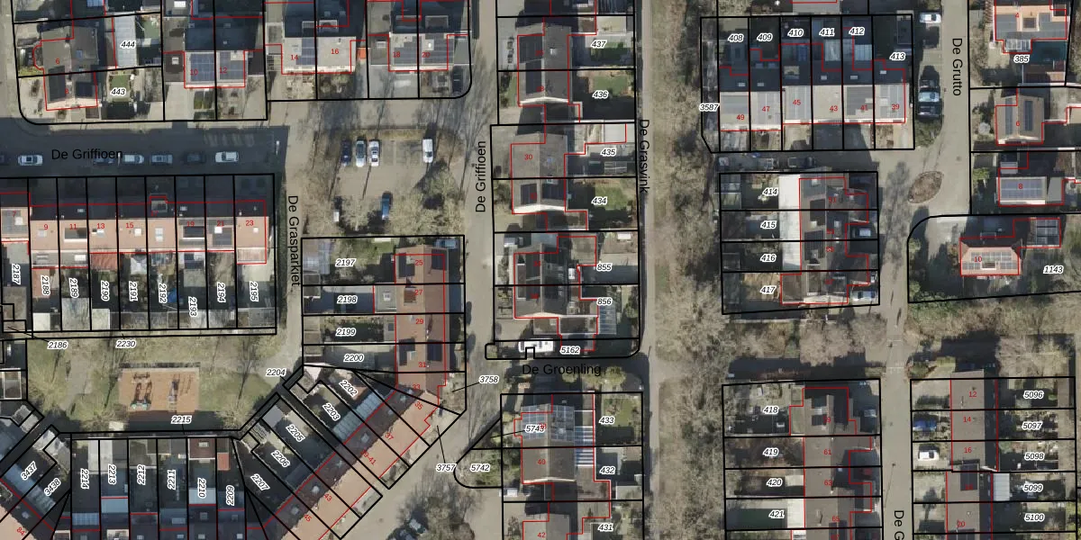 Gebruik de zoekbalk of klik op een perceel voor informatie over de adressen binnen dit perceel.