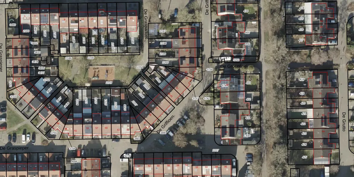 De Griffioen 37 is gelegen op kadastraal perceel AML01N2202. Deze kadastrale aanduiding is uniek en wordt gebruikt door het Kadaster om eigendomsrechten en andere zakelijke rechten vast te leggen. Het perceel maakt onderdeel uit van de kadastrale gemeente Ambt-Almelo.