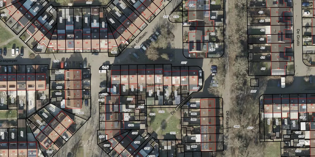 De Griffioen 54 is gelegen op kadastraal perceel AML01N2224. Deze kadastrale aanduiding is uniek en wordt gebruikt door het Kadaster om eigendomsrechten en andere zakelijke rechten vast te leggen. Het perceel maakt onderdeel uit van de kadastrale gemeente Ambt-Almelo.