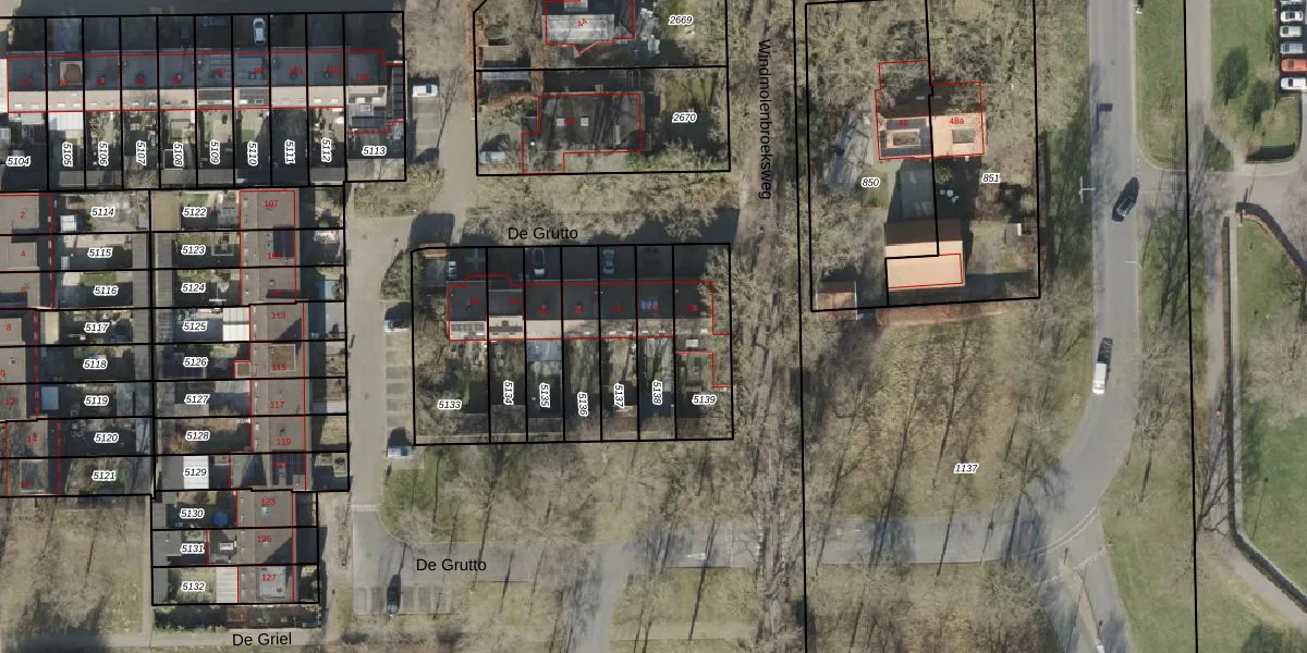 Het perceel waarop De Grutto 52 staat heeft een oppervlakte van 171 m². Dit is een middelgroot perceel. De perceeloppervlakte wordt geregistreerd door het Kadaster. Gedetailleerde informatie over de maten van dit perceel kunt u vinden in het rapport Kadastrale kaart met maatvoering van De Grutto 52.