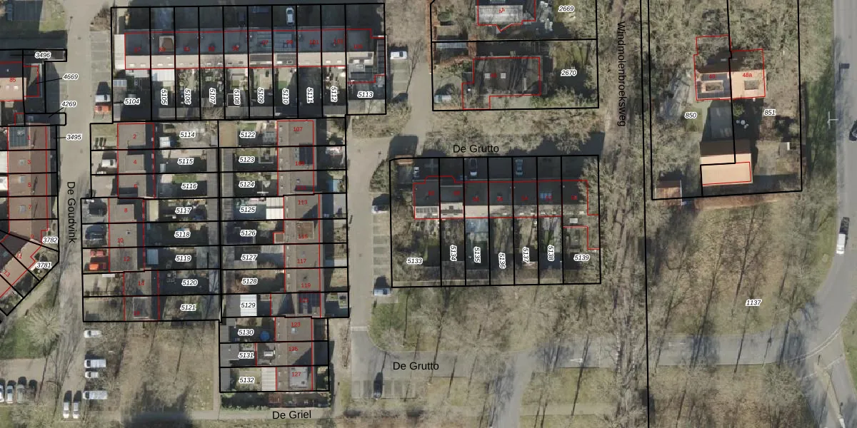 Het perceel waarop De Grutto 62 staat heeft een oppervlakte van 349 m². Dit is een groot perceel. De perceeloppervlakte wordt geregistreerd door het Kadaster. Gedetailleerde informatie over de maten van dit perceel kunt u vinden in het rapport Kadastrale kaart met maatvoering van De Grutto 62.