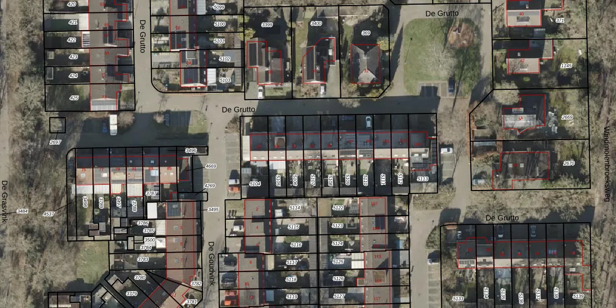 Gebruik de zoekbalk of klik op een perceel voor informatie over de adressen binnen dit perceel.