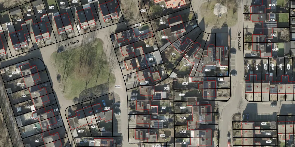 Het perceel waarop De Havik 9 staat heeft een oppervlakte van 314 m². Dit is een groot perceel. De perceeloppervlakte wordt geregistreerd door het Kadaster. Gedetailleerde informatie over de maten van dit perceel kunt u vinden in het rapport Kadastrale kaart met maatvoering van De Havik 9.