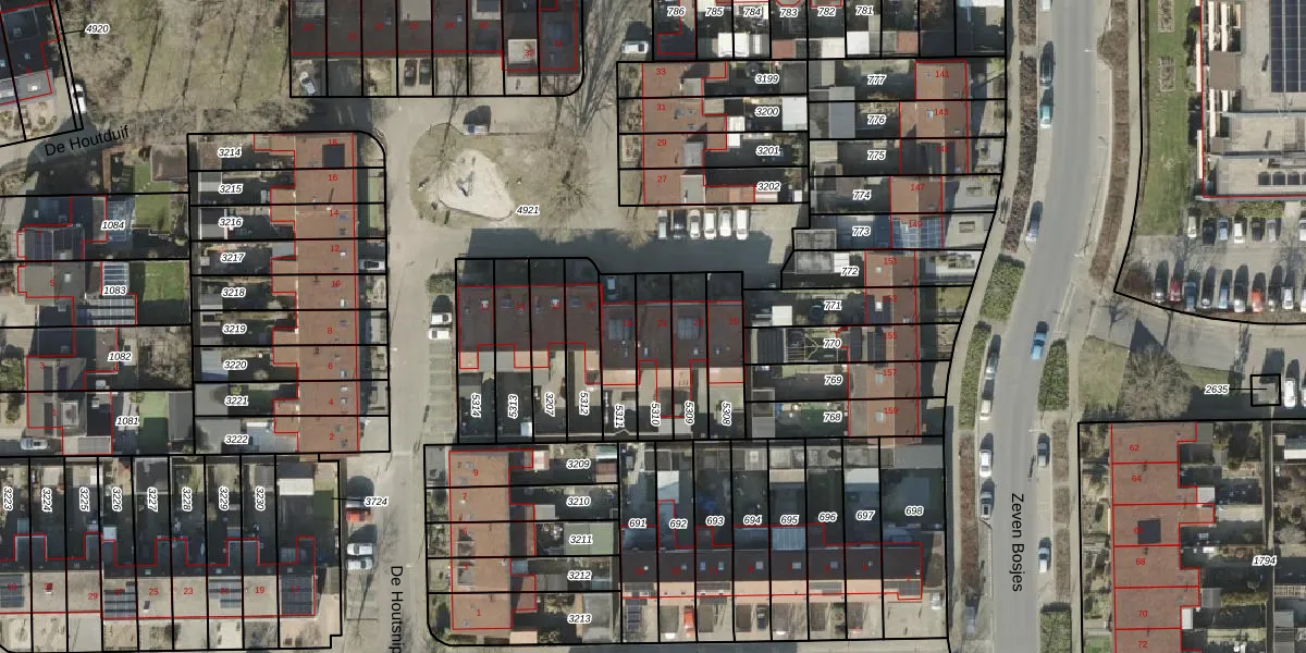 Het perceel waarop De Houtsnip 21 staat heeft een oppervlakte van 141 m². Dit is een middelgroot perceel. De perceeloppervlakte wordt geregistreerd door het Kadaster. Gedetailleerde informatie over de maten van dit perceel kunt u vinden in het rapport Kadastrale kaart met maatvoering van De Houtsnip 21.