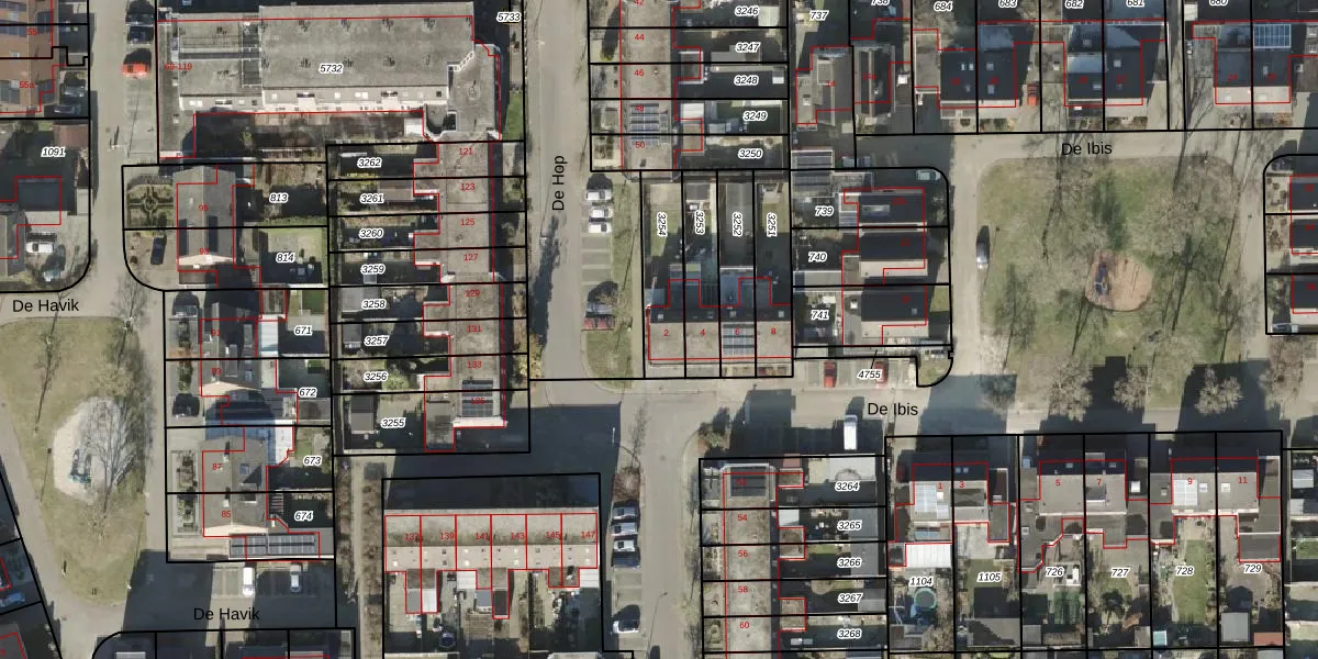 Het perceel waarop De Ibis 2 staat heeft een oppervlakte van 208 m². Dit is een middelgroot perceel. De perceeloppervlakte wordt geregistreerd door het Kadaster. Gedetailleerde informatie over de maten van dit perceel kunt u vinden in het rapport Kadastrale kaart met maatvoering van De Ibis 2.